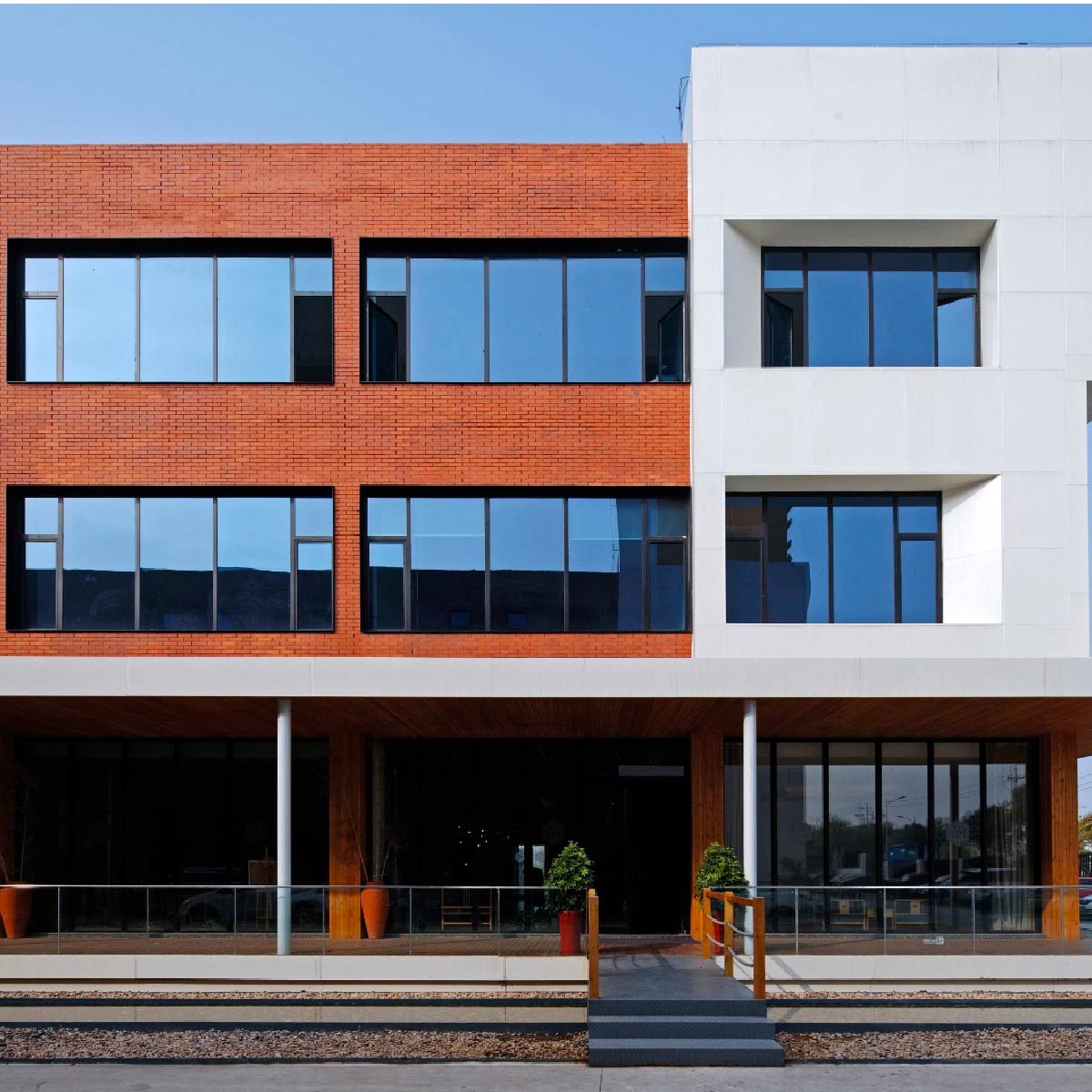 【文化空间】日照工业设计中心 园区整体红色为主的外立面在白色造型和局部少量桔色块黑色窗套钢构等线条的搭配下充满了热情和明媚化解了方形直线条为主的刚硬与冷漠感性与理性在此得以融合体现 相关案例 脉沃 Odonate 三维运动捕捉与步态分析设备 卡尔 · 蔡司眼科诊断仪器设计 大英博物馆衍生品设计